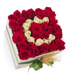 Kalp Vazoda Beyaz Gül ve Lilyum.